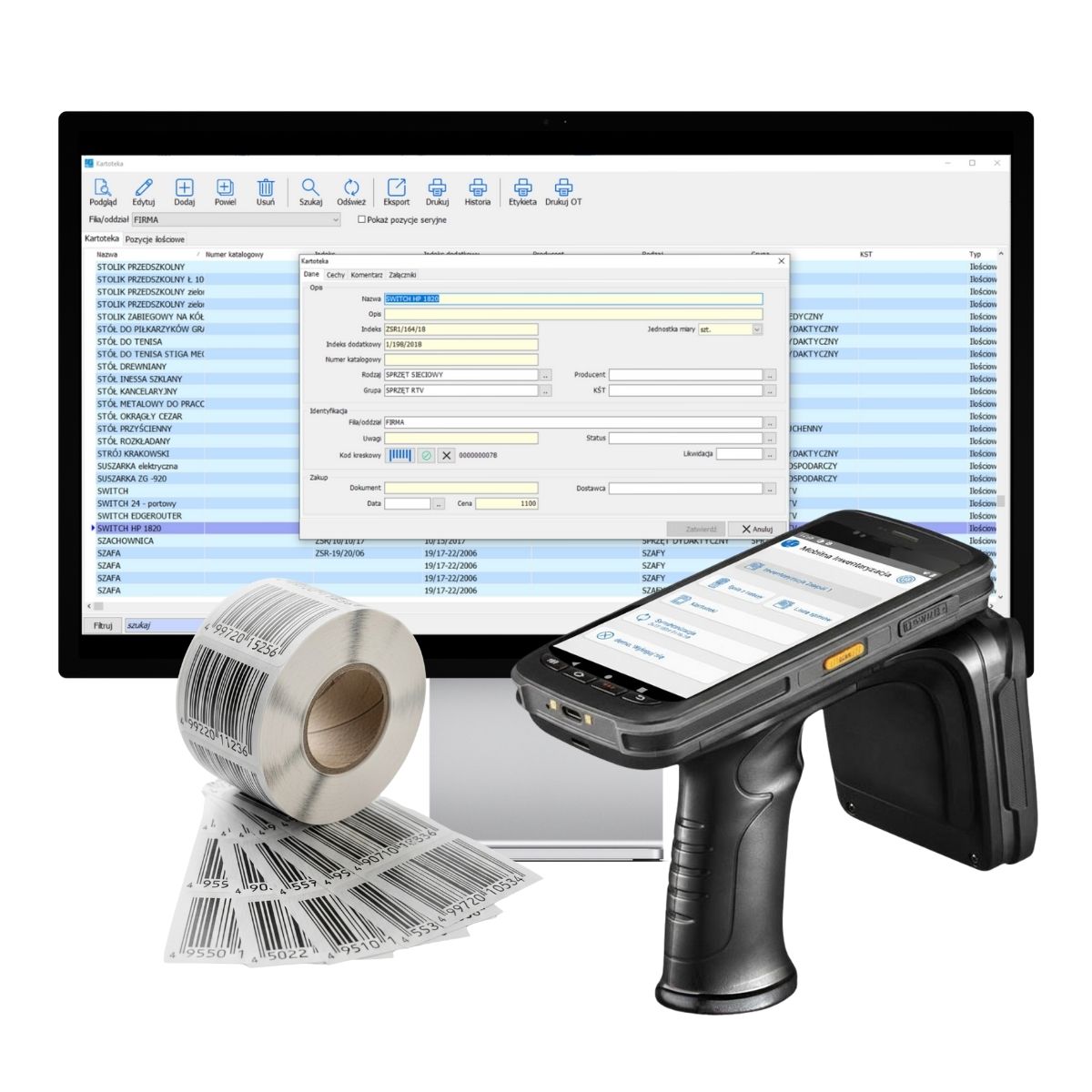 Program Szybka Inwentaryzacja w połączeniu z kolektorem danych oraz zadrukowanymi etykietami w ilości 1000 sztuk pozwala w prosty sposób spisać całe wyposażenie firmy.